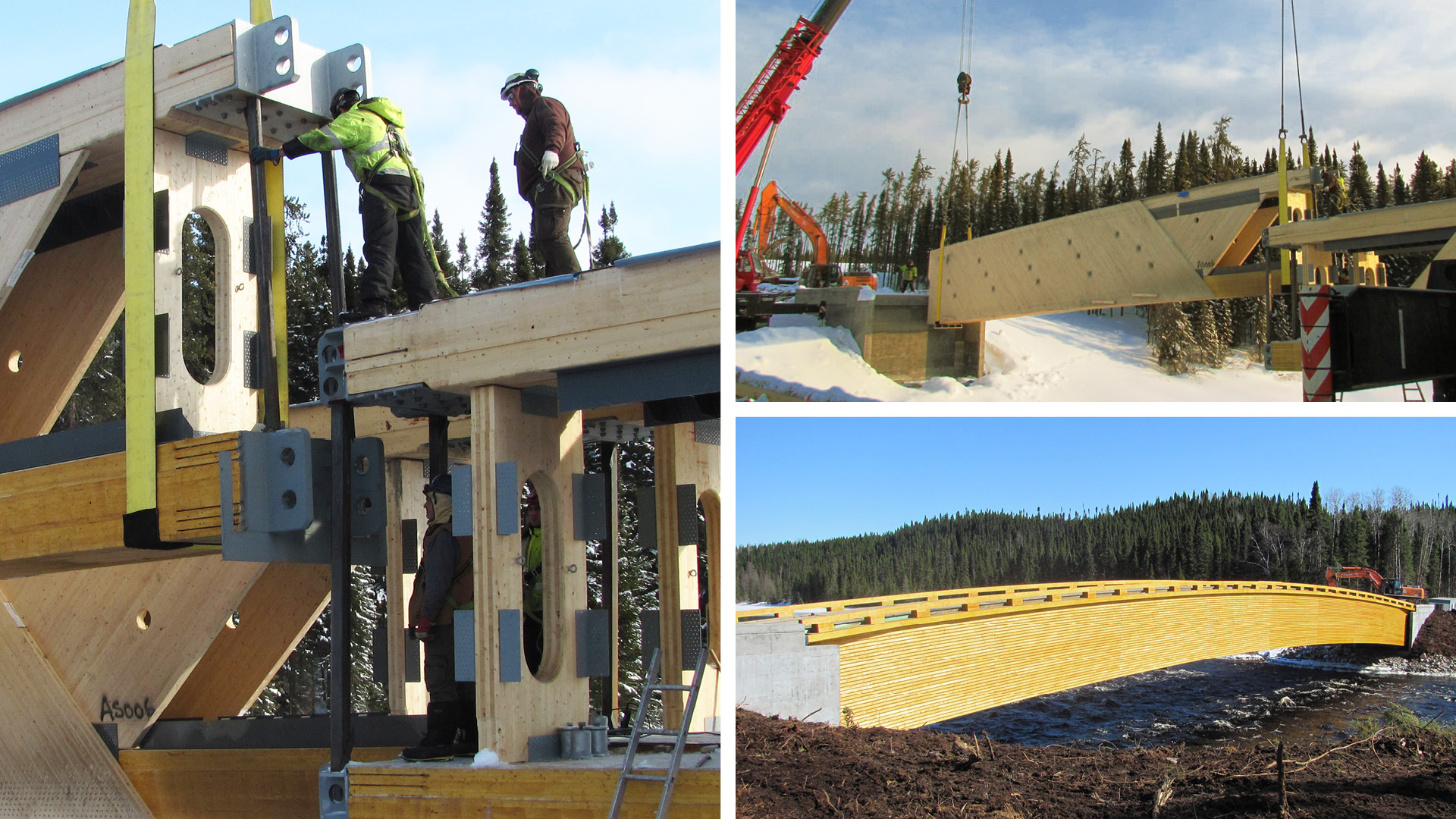 Avec ses 68 mètres de portée libre, le pont Maicasagi est le pont droit en bois le plus grand du monde. Cette prouesse d’ingénierie permet de supporter des charges de camions forestiers de 180 tonnes. Il s’agit d’un pont en bois sans piliers intermédiaires optimisant les propriétés de deux produits de bois d’ingénierie (bois lamellé-croisé et lamellé-collé). (Le Monde Forestier)