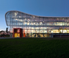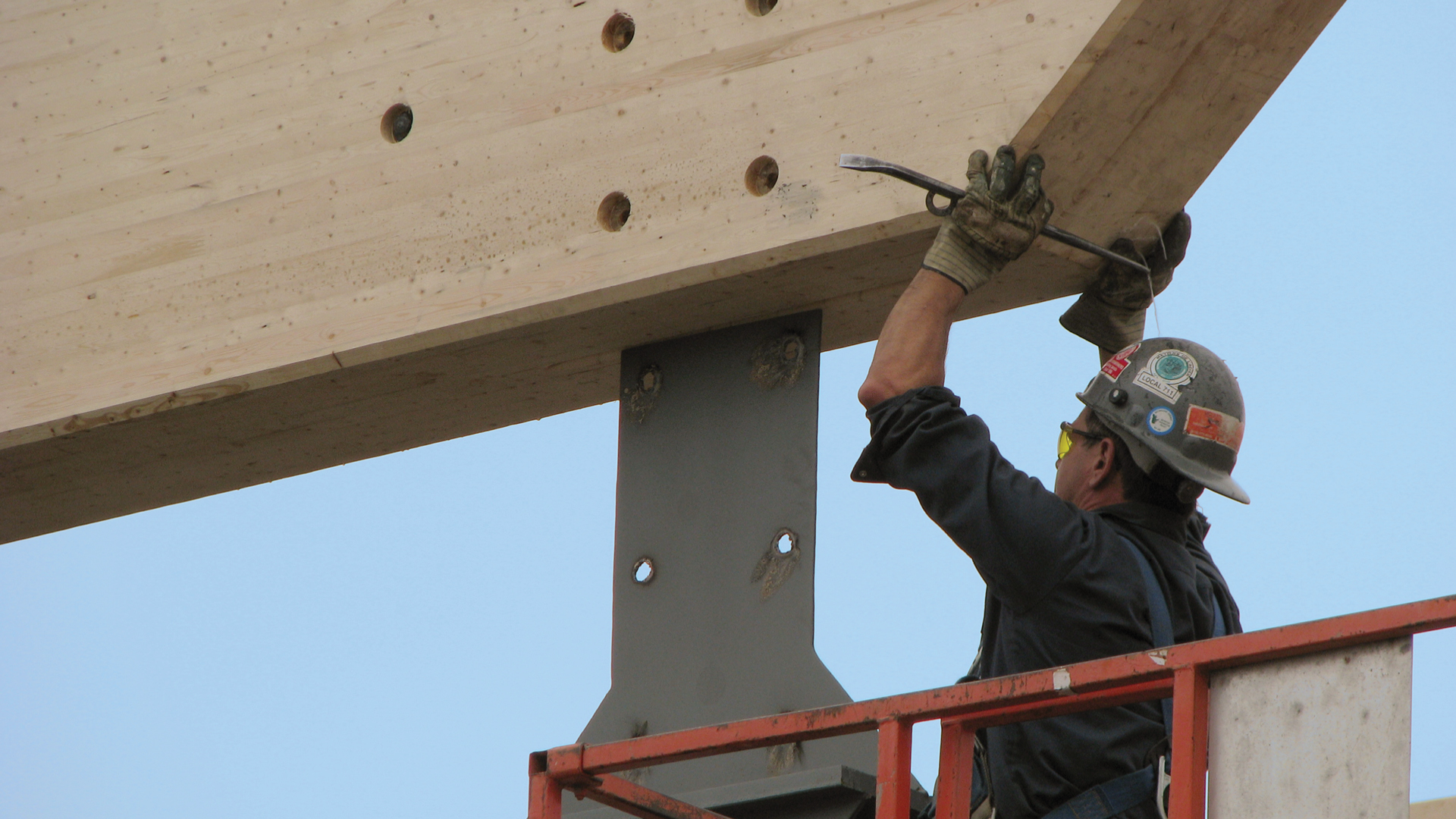 This structure demonstrates wood’s strength and versatility, as well as its viability as an economical alternative for industrial structures. Glulam post and beam grids handle gravity loading, and glulam shear elements counteract out-of-plane loads, and provide a light and airy workplace in the process.