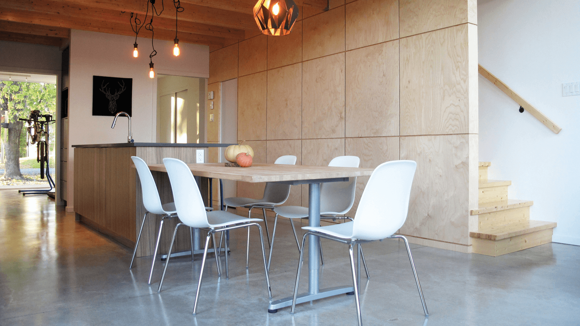This split-level home features interior spaces that open onto its garden, filling the living space with natural light. With compact dimensions, its design is stripped down to the essentials, embodying a back-to-basics approach to living. Viewed from the street, it appears as a monolithic silhouette sheathed in wood. Inside, polished natural concrete, a visible wooden structure, openings to the exterior and an area at the back with double-high ceilings and ample windows give this small home a striking sense of space and continuity with the exterior. (studio PER.CH)