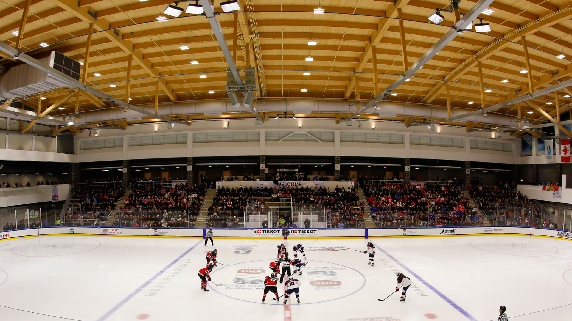The Canisius Golden Griffins (Griffs) and the National Hockey League Buffalo Sabres moved into the brand new HarborCenter training facility in downtown Buffalo. The building has NHL rink dimensions (200 ft by 85 ft), with 1,800 seats, and a sports performance training facility. It’s finally a rink that the Golden Griffins can use as a recruiting tool. (The Buffalo News)