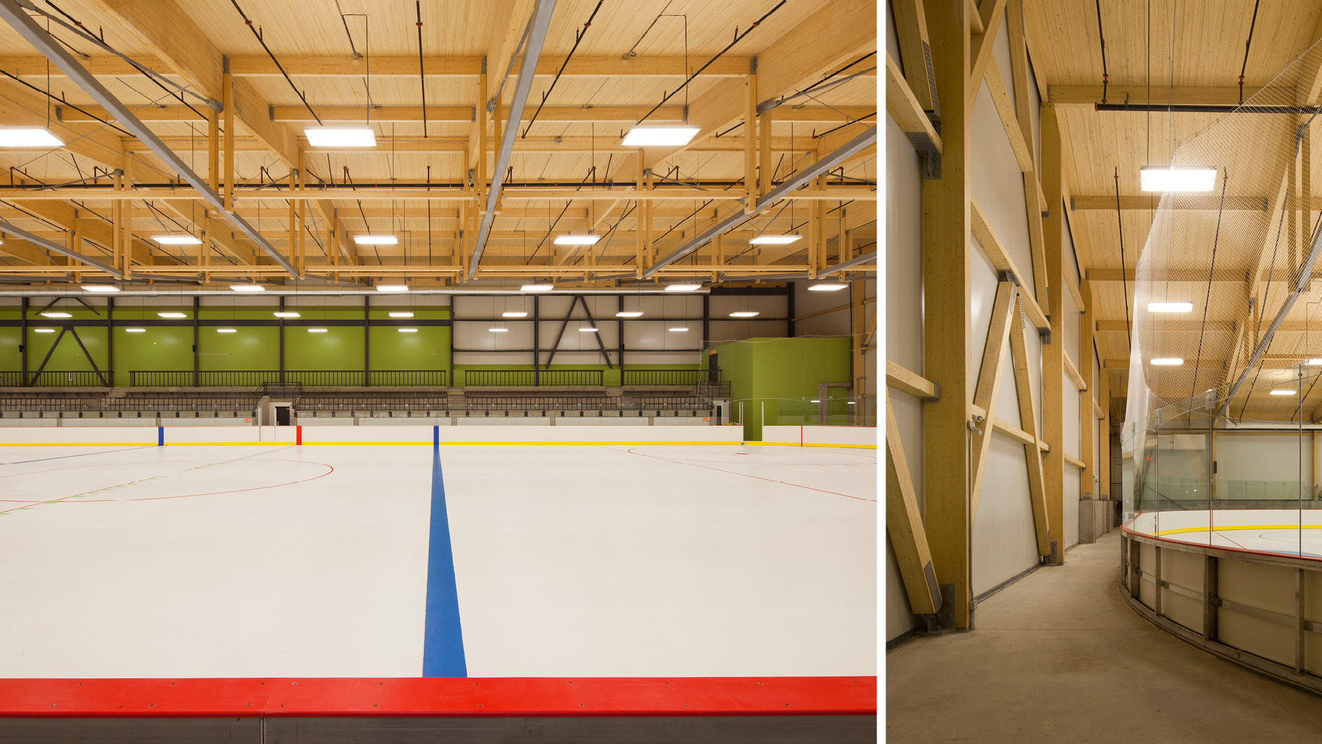Hybridized wood and steel provide strong, stable structural properties and a reduced environmental footprint for this Chelsea rink.