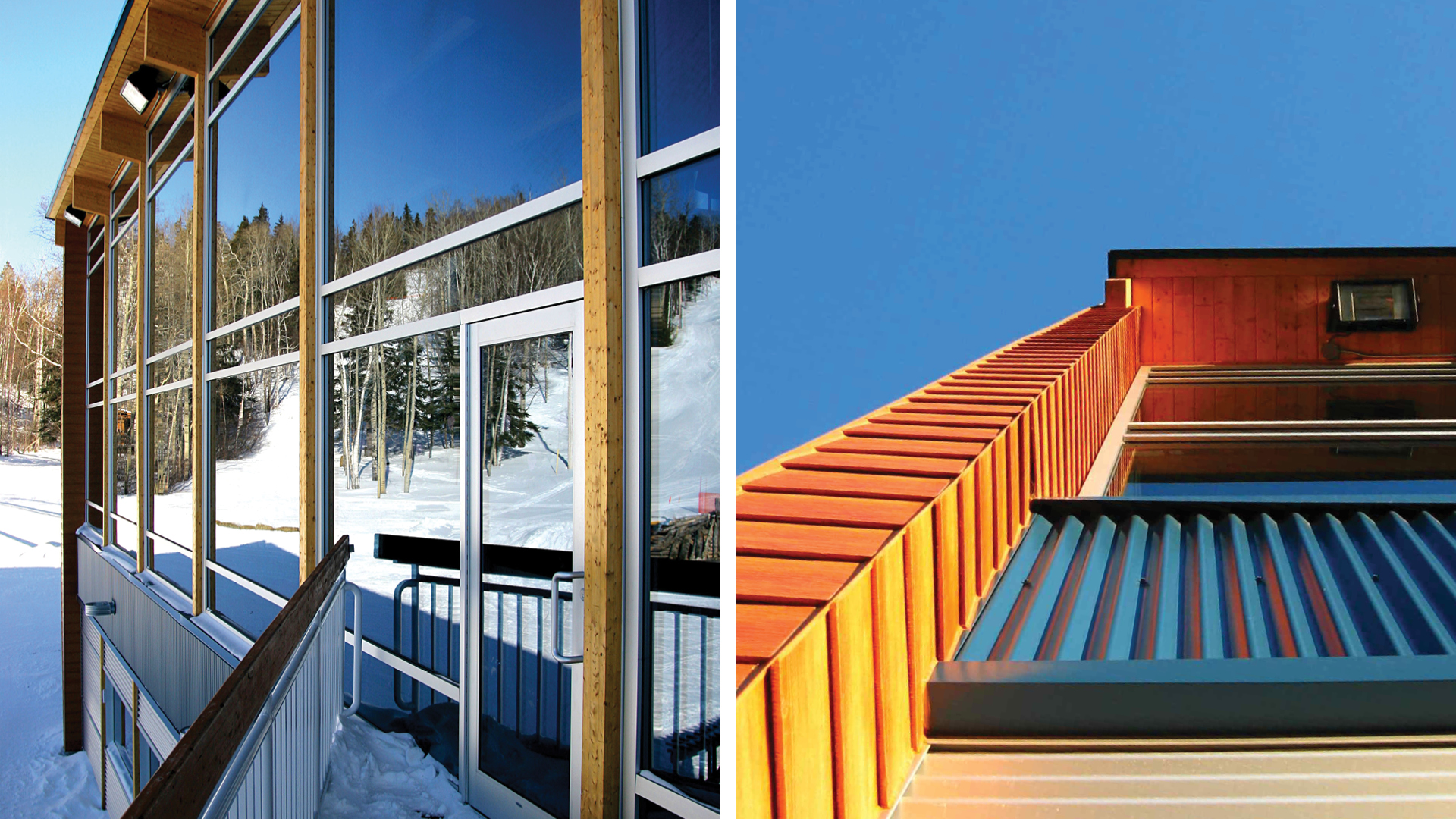 Wood brings warmth and comfort to skiers, while large glazed walls provide breathtaking views of the slopes and bring ambient light into the Chalet.