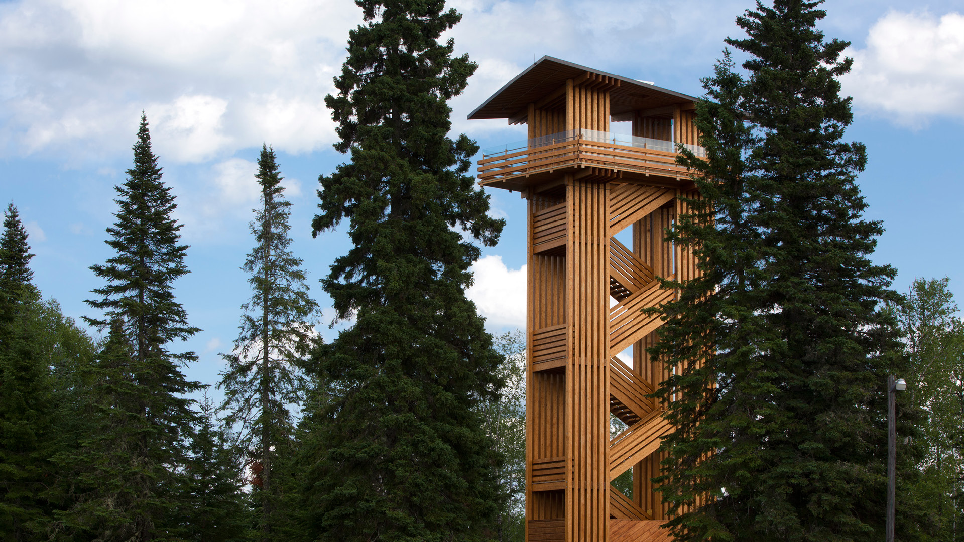 Supported by 4 main columns comprising 7 glulam elements, the observation tower provides splendid views of the natural surroundings. The 23,7 m tower at the Ermitage Saint-Antoine is accessed via a nature trail at this historic pilgrimage site.