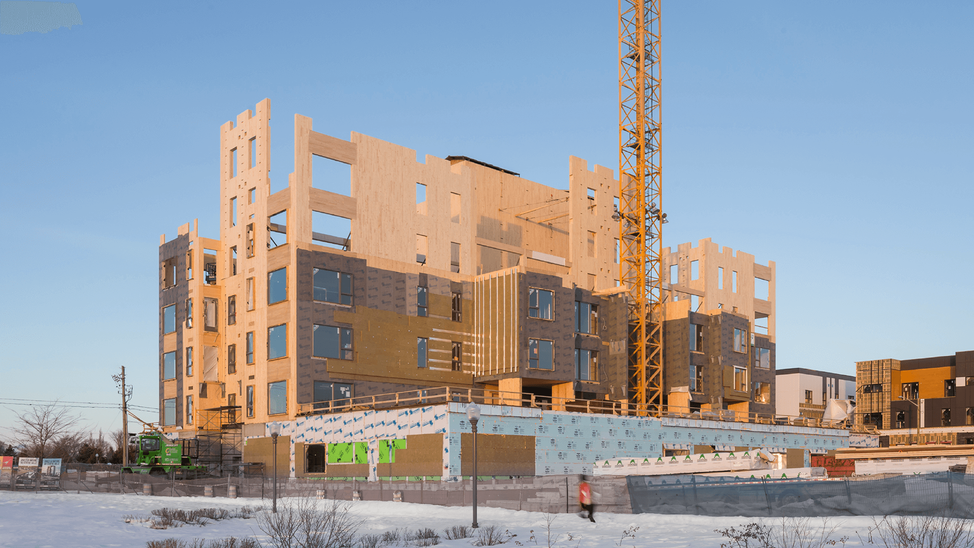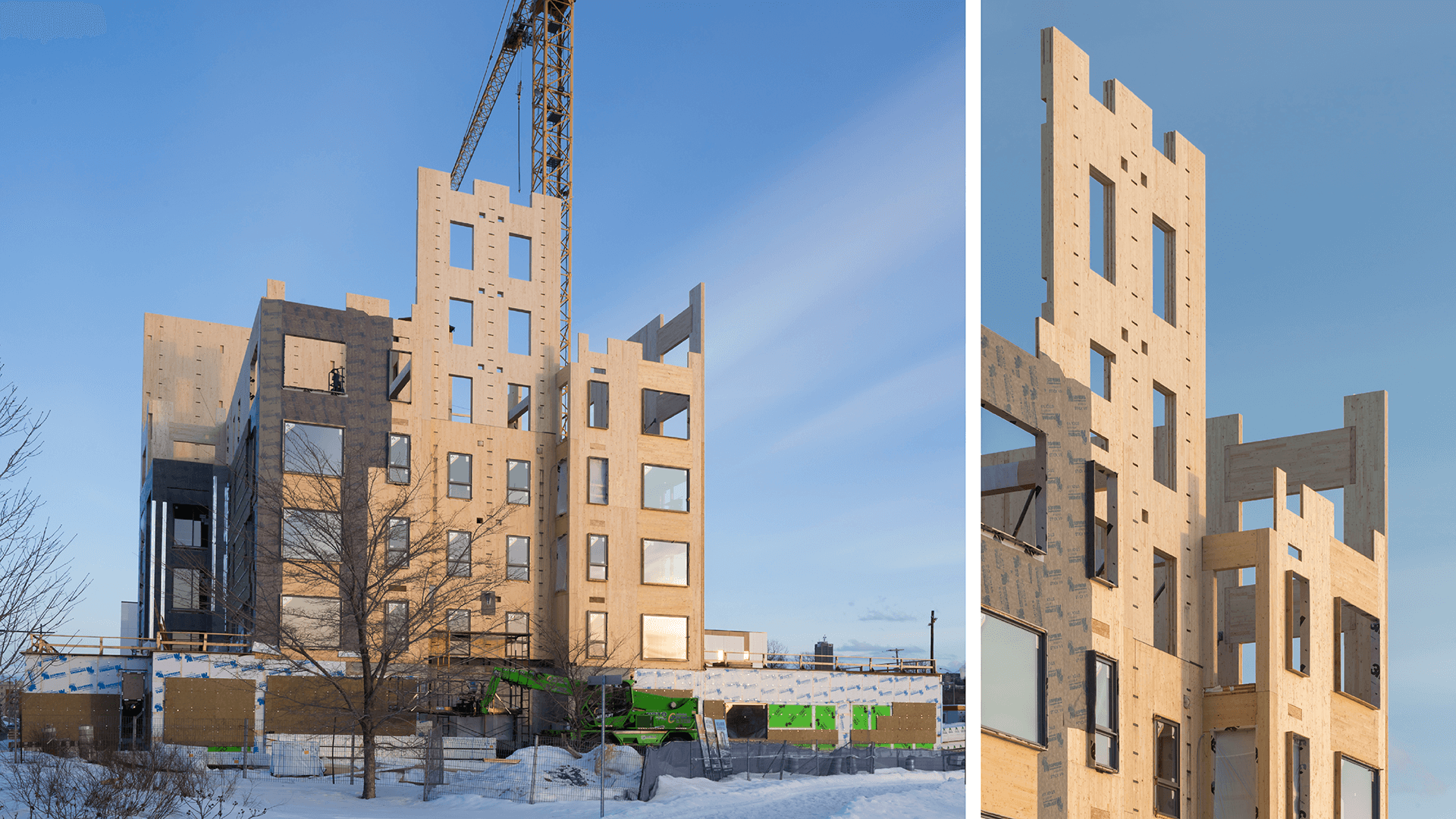 Origine, a major 13-storey residential project in Quebec City’s Pointe-aux-Lièvres eco-district, will consist of a 12-floor solid wood structure on a concrete podium and measure 40.9 meters in height. A long time in the making, the project has drawn on input from federal and provincial officials as well as research institutes, and will help pave the way for the development of a North American market for solid wood building products made in Quebec.