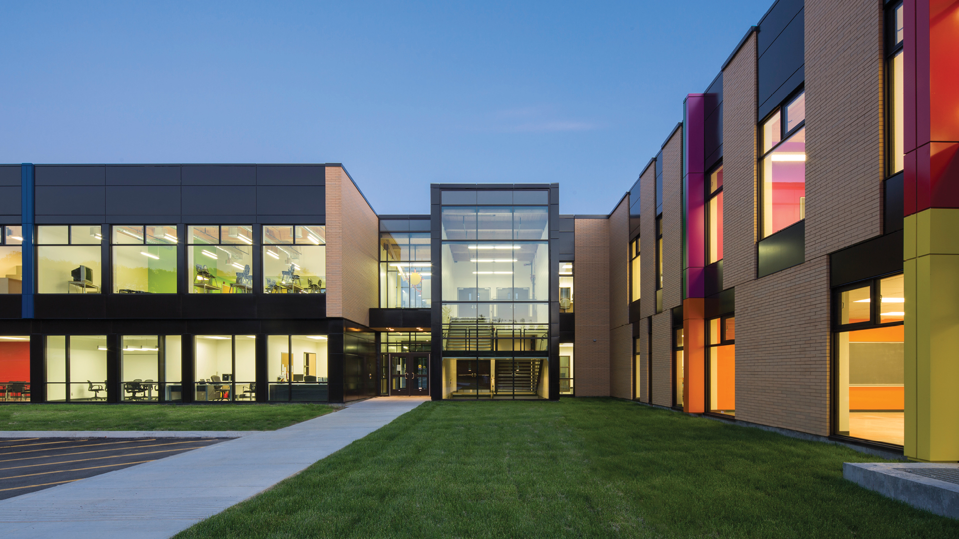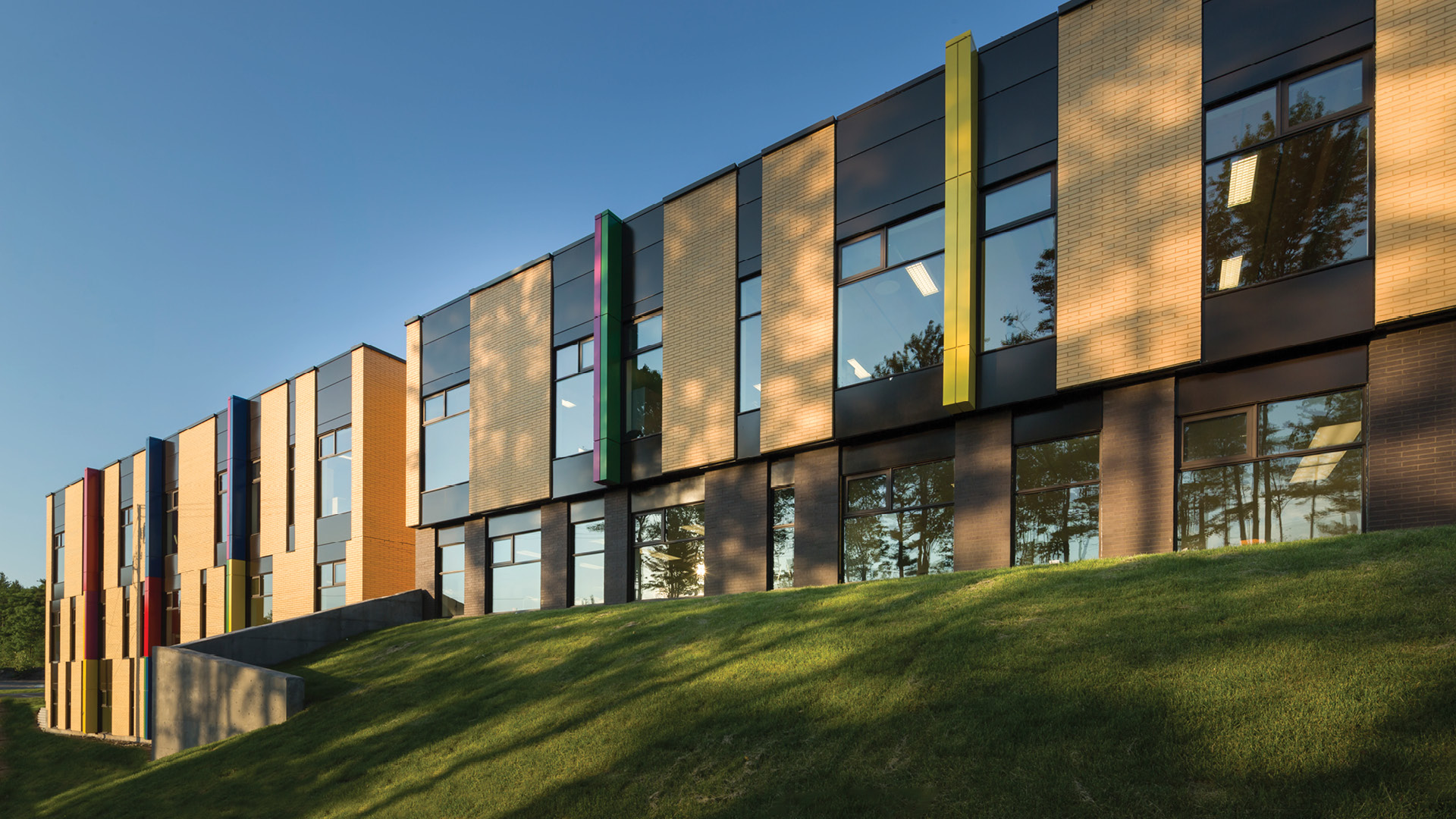 The Sans-Frontières elementary school houses a student body of 650 students, in 28 classrooms. This is the first school in Quebec to be built of glued-laminated elements, and benefits from the natural warmth and the natural human response to wood. In addition to its environmental sensitivity, wood provides inherent positive effects on students and teachers in scholastic settings.