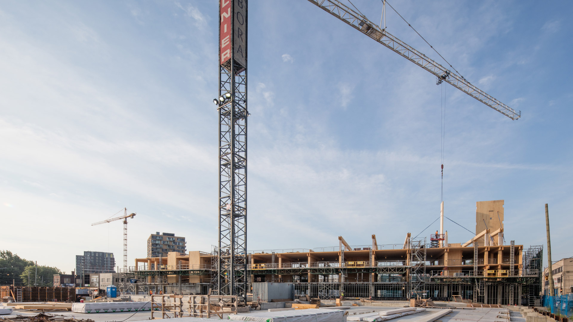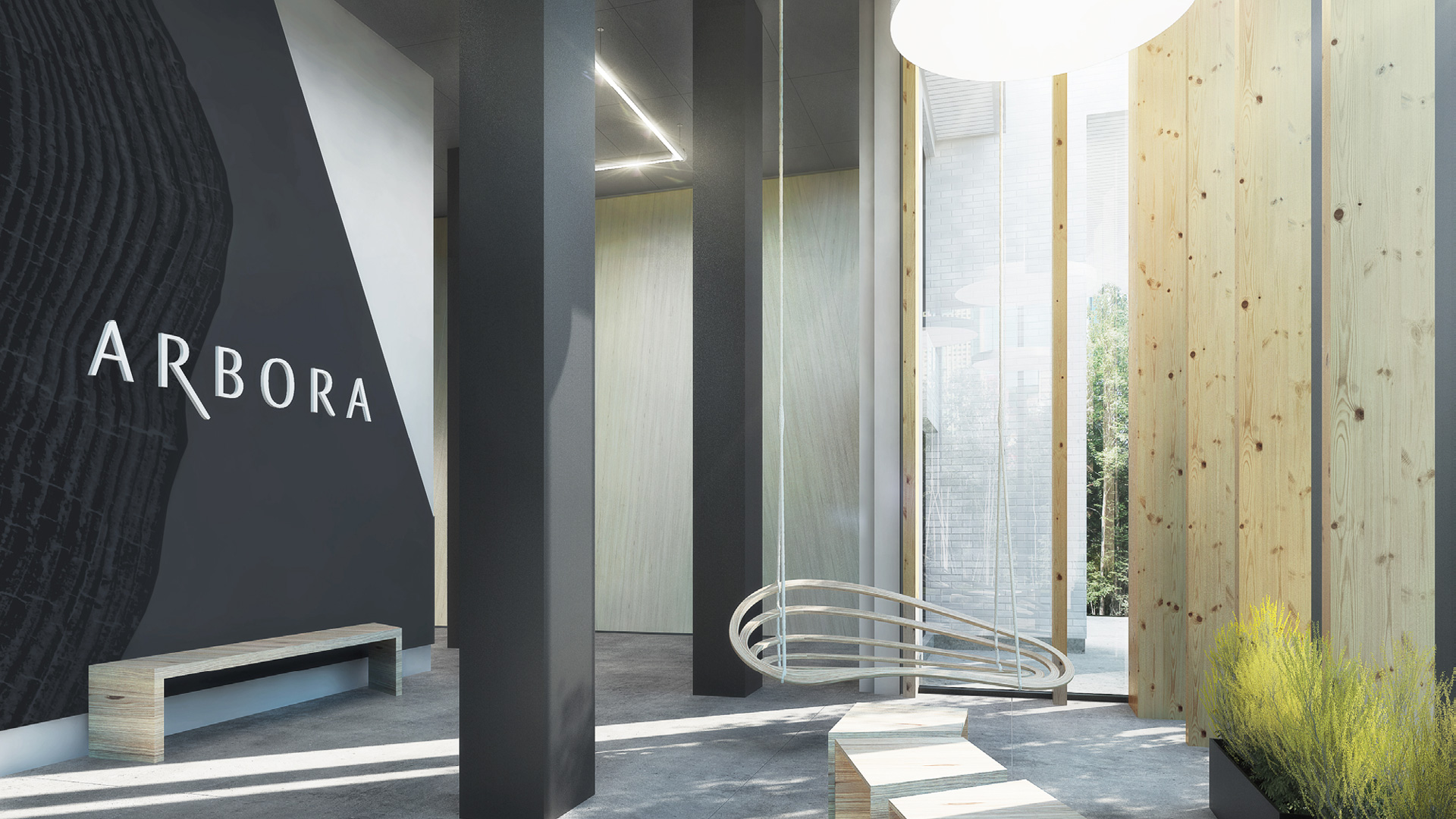Situé dans le quartier Griffintown, le projet Arbora sera le plus grand complexe au monde construit en bois massif. À terme, il comptera 434 unités résidentielles : 274 copropriétés, 30 maisons de ville ainsi que 130 logements locatifs pour une superficie totale de 597 560 pi2. Avec ses trois immeubles de 8 étages, le projet se distingue sur le plan environnemental, entre autres en prévoyant 40 % d’espaces verts et visant la certification LEED Platine.