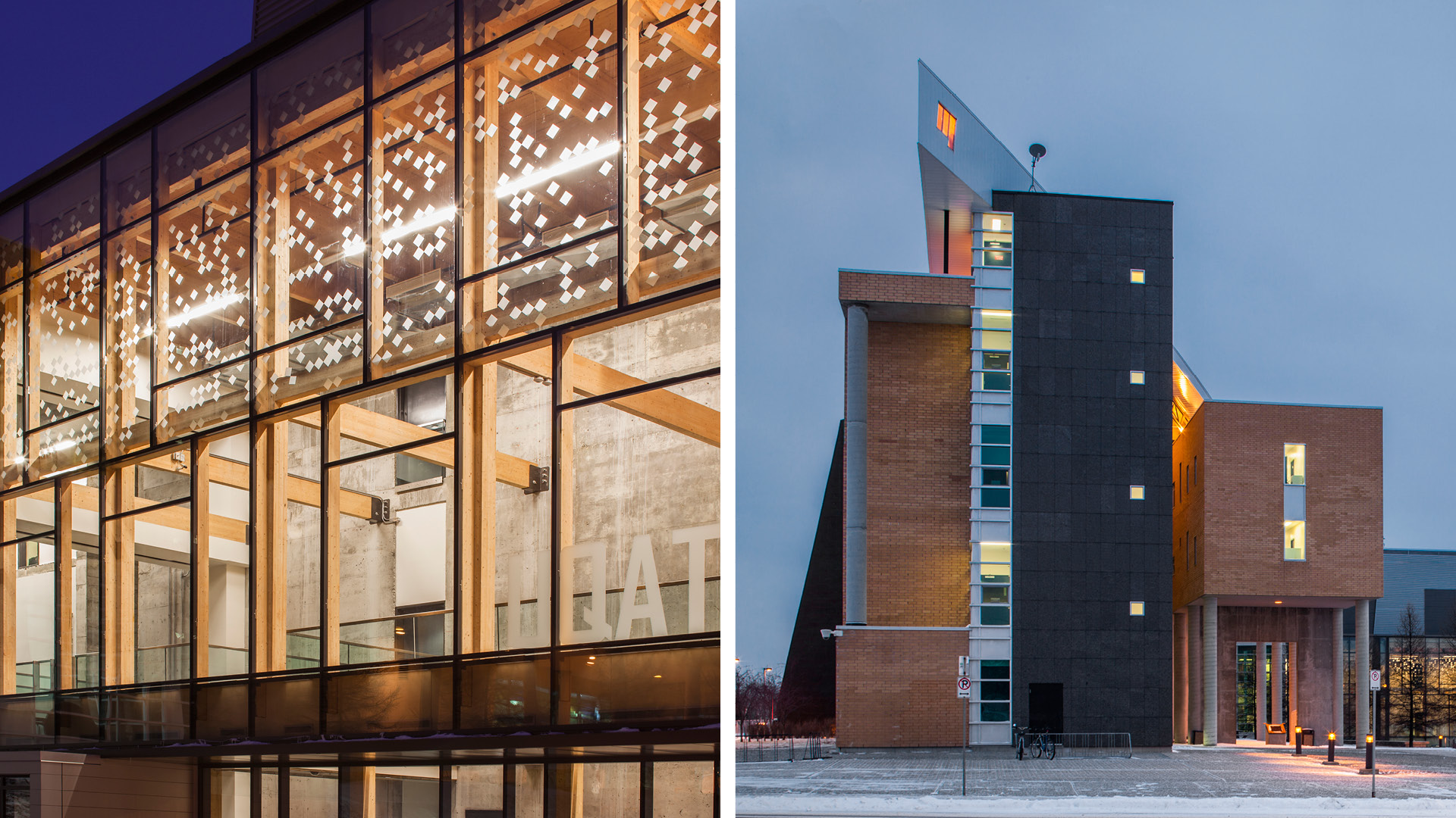 Le pavillon des sciences de l’UQAT est un bâtiment d’une superficie de 1355 m² et d’une hauteur de 12,8 m. Le volume de bois de structure totalise 330 m³. Le bâtiment de trois étages est de construction hybride bois-béton-acier. Le projet s’inspire de l’histoire même de l’Abitibi et des deux ressources primaires qui ont fait naître la région : les forêts et les mines. À lire, l’étude de cas sur ce bâtiment ici.