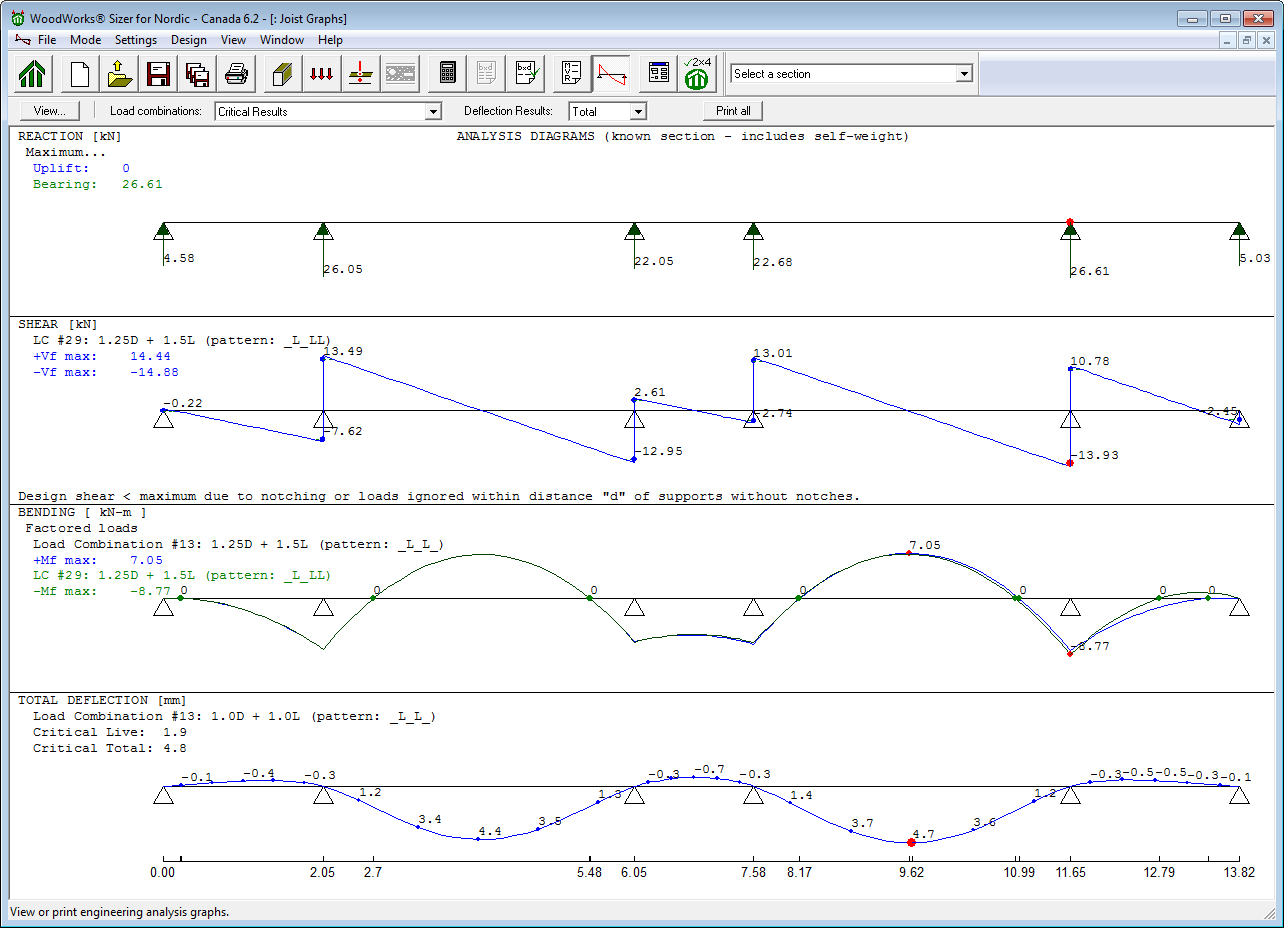 Nordic Sizer software application analyzes and designs members for specified loads in accordance with CSA O86 (Canada) or NDS (United-States) standard, and automatically checks load cases and load combinations in accordance with NBC (Canada) or IBC (United-States). Features include floor vibration checks and fire resistance calculations.