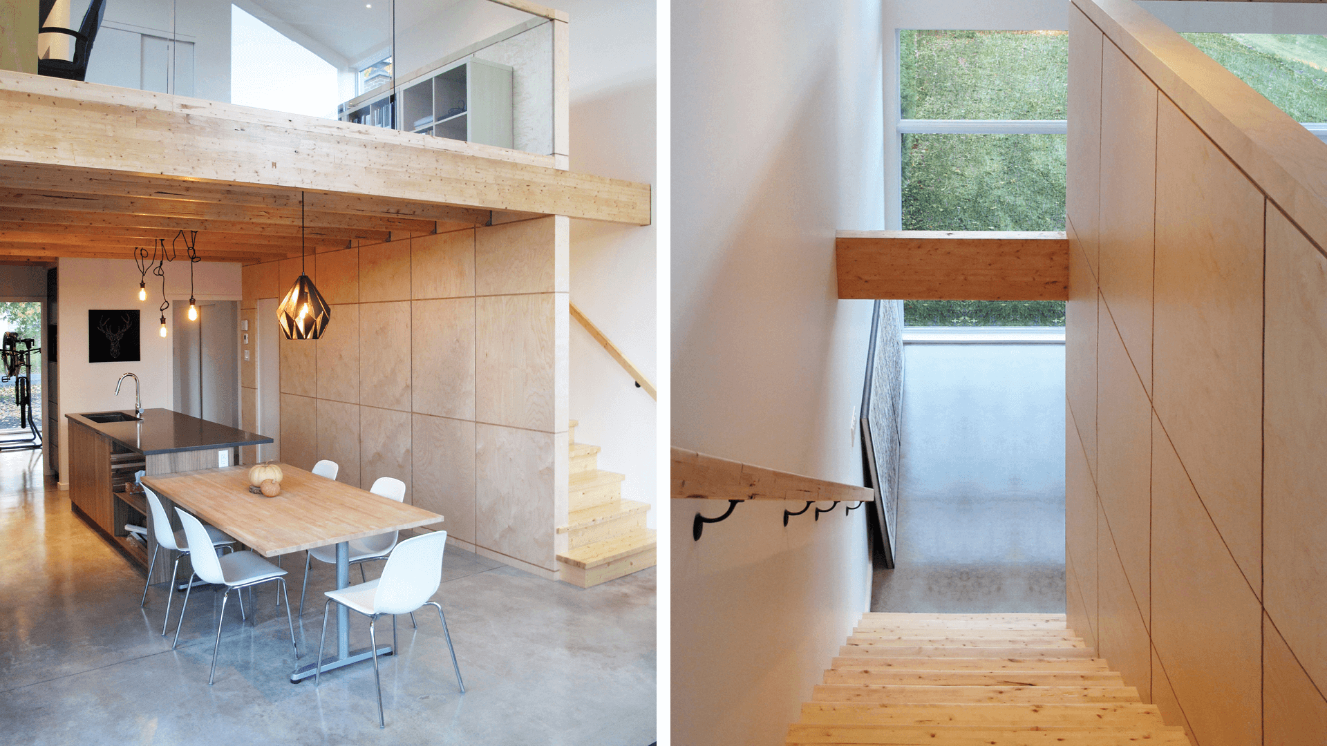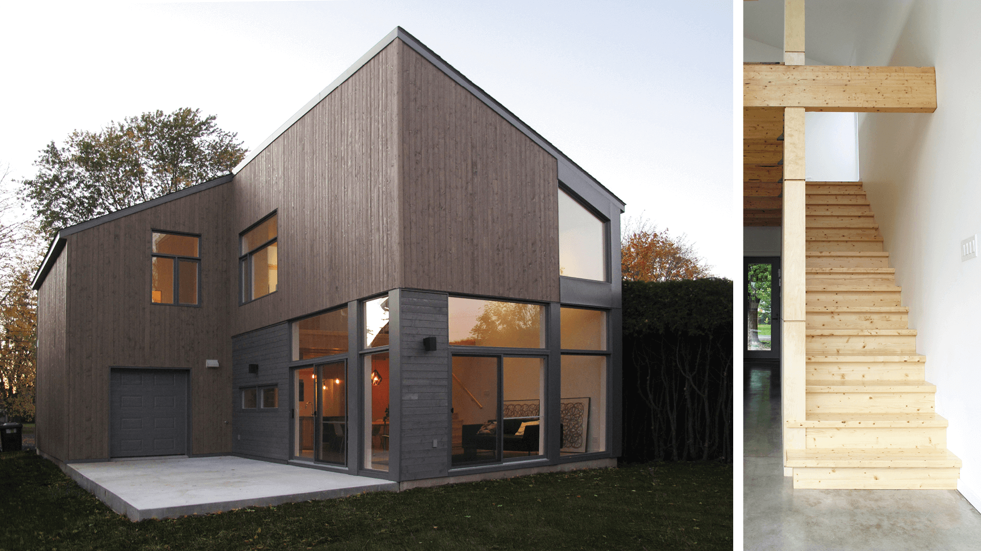 This split-level home features interior spaces that open onto its garden, filling the living space with natural light. With compact dimensions, its design is stripped down to the essentials, embodying a back-to-basics approach to living. Viewed from the street, it appears as a monolithic silhouette sheathed in wood. Inside, polished natural concrete, a visible wooden structure, openings to the exterior and an area at the back with double-high ceilings and ample windows give this small home a striking sense of space and continuity with the exterior. (studio PER.CH)