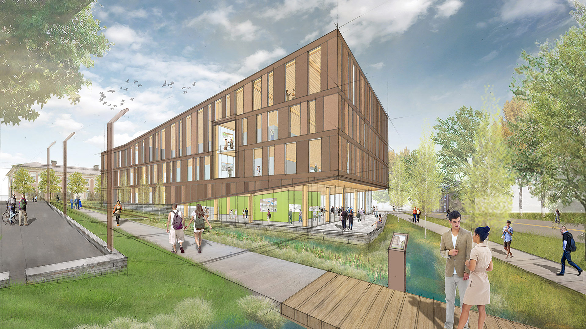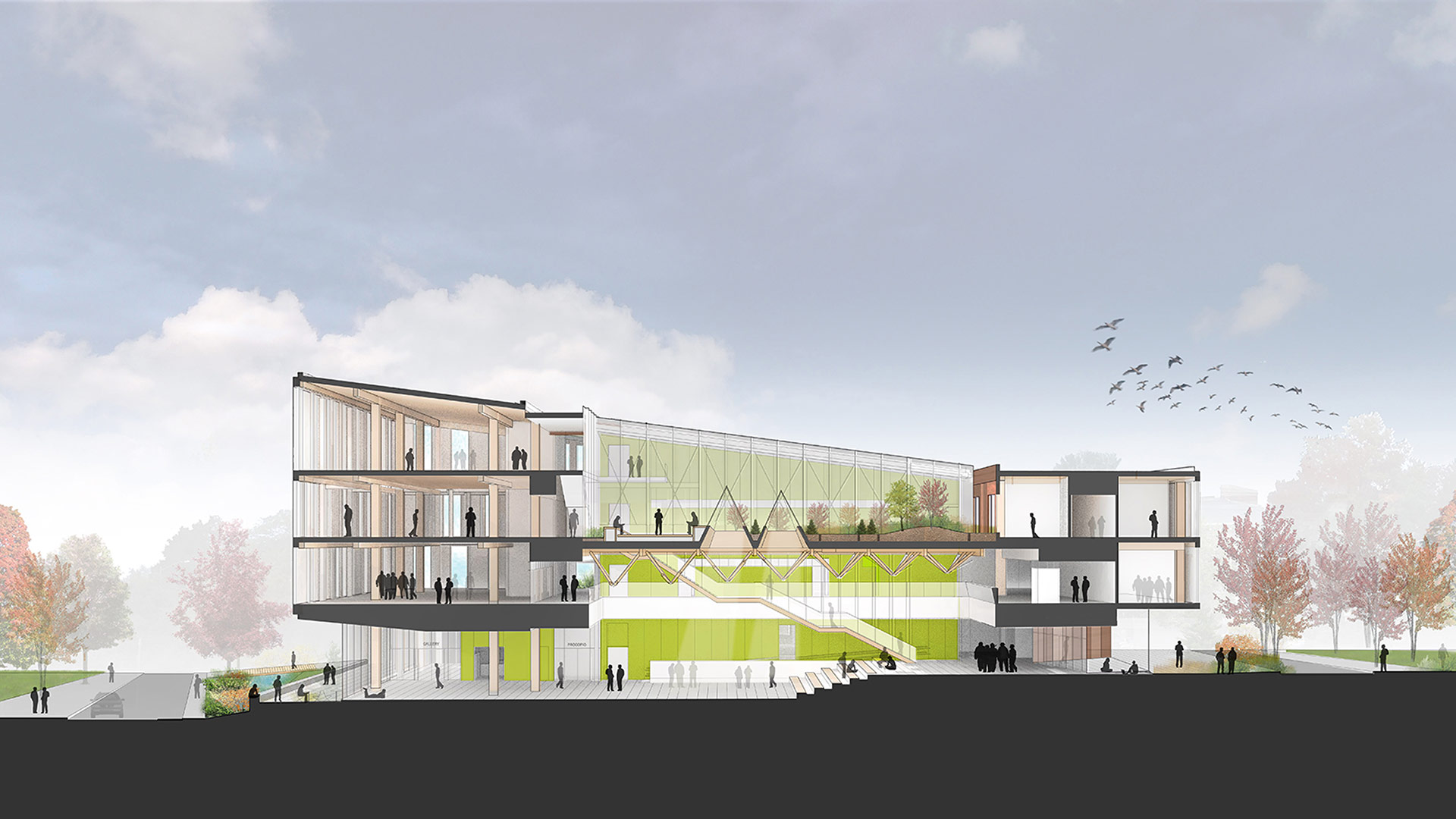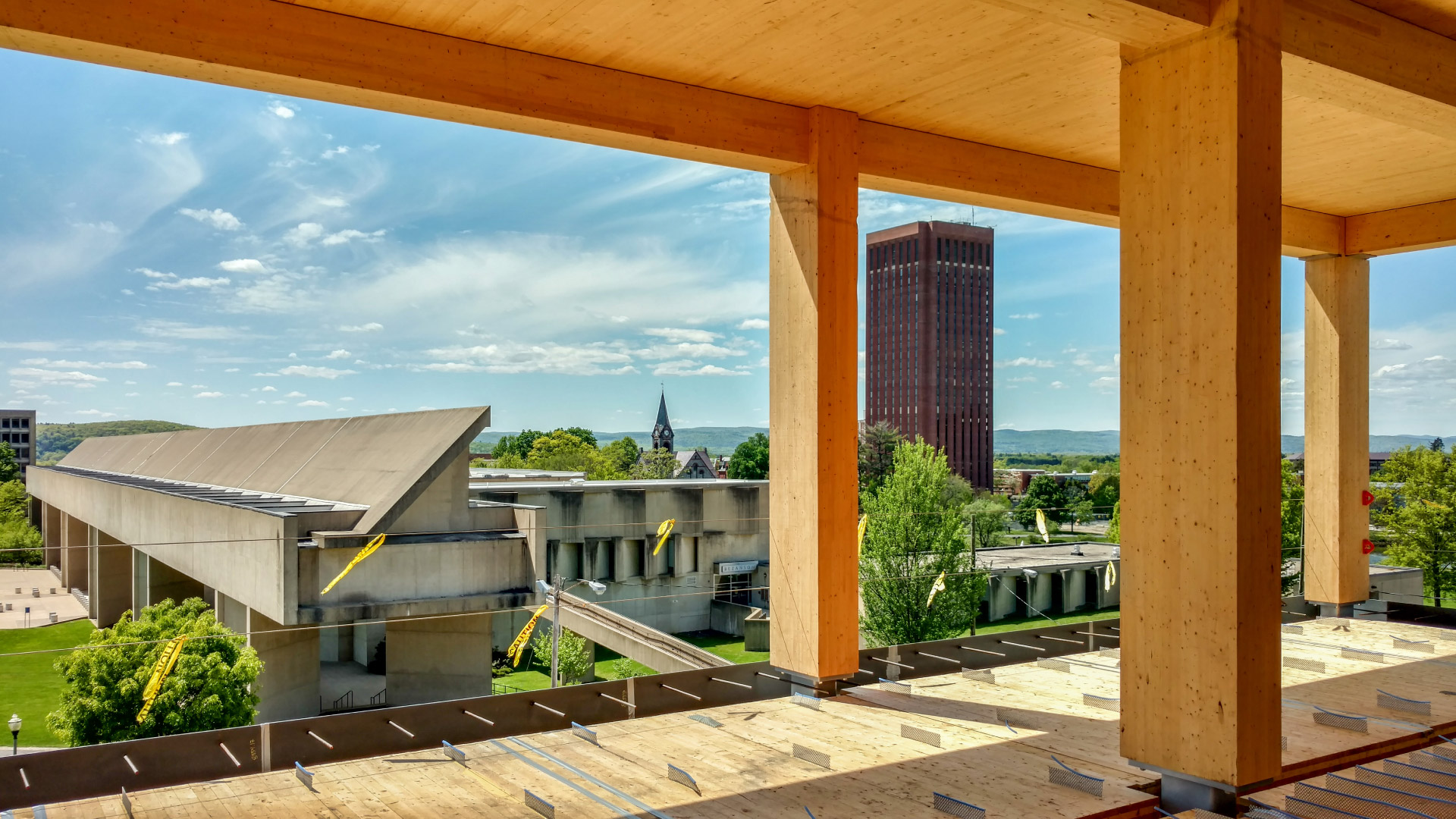 Located in Amherst, the University of Massachusetts has established a new design pavilion. The University decided to use wood as the main structural material in order to have a sustainable structure respectful of the environment. Comprising three different hybrid elements—wood-concrete, steel-concrete, and steel-wood, the pavilion incorporates the latest technology in the field of structural building design. Floors are made with a composite system of cross-laminated timber panels mechanically fastened to a concrete slab using innovative connectors, a first in the United States. This pavilion is a teaching demonstration of the potential for using different building materials in the same project.
